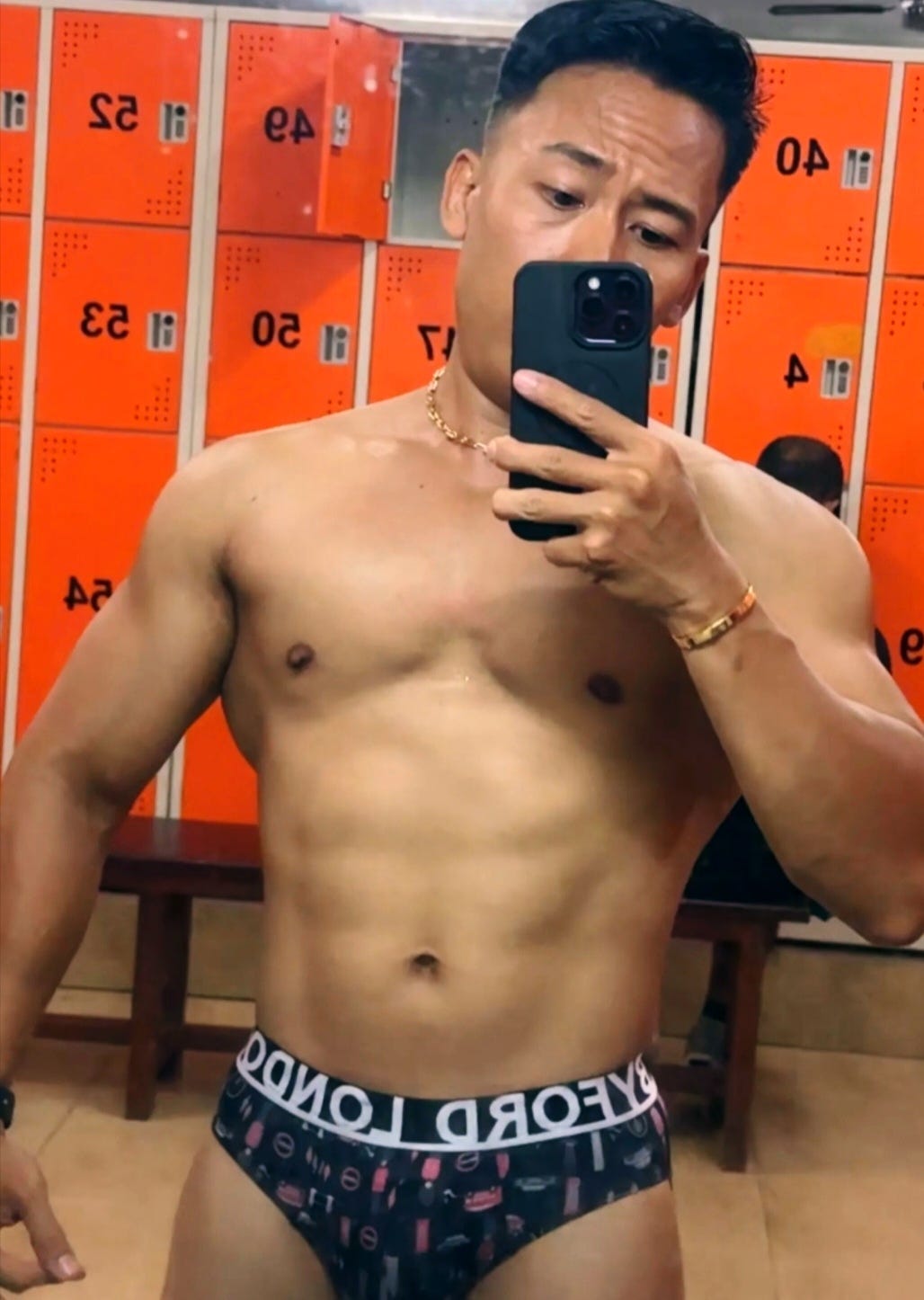 Thuong was already in his thongs. His “business attire” collapsed into a heap on the dirty marble tiles. That dragon/phoenix tattoo looked like it was about to take flight and the water sliding off his bronzed pecs, made Lewis realize that this was a man who had deep cavities. 1.7 meters of pure muscle.